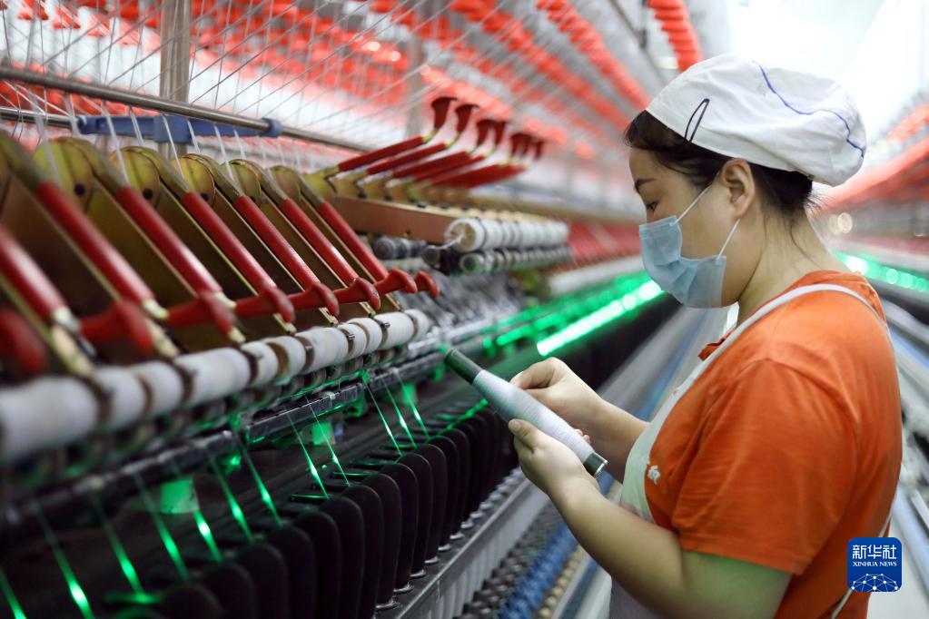 2月16日,工人在石家庄市藁城经济开发区一家化纤企业生产车间内工作。