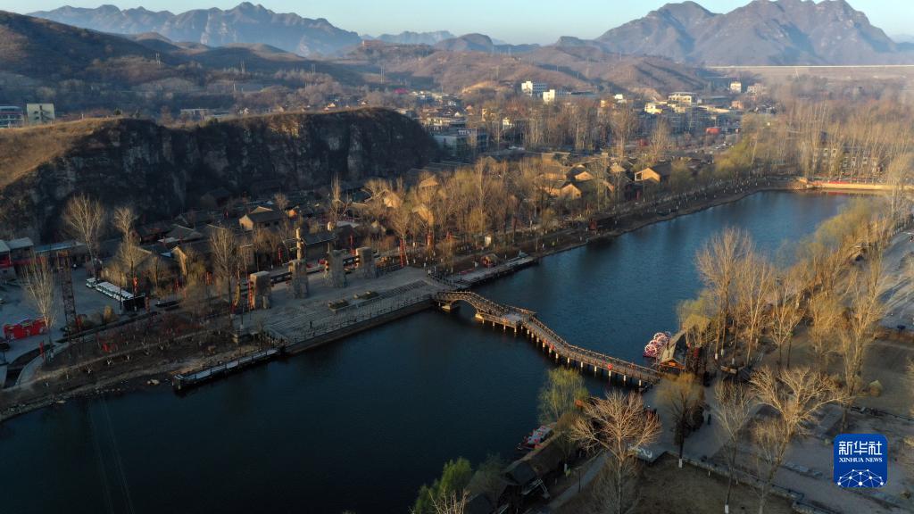 这是3月18日拍摄的保定市易县恋乡·太行水镇景区景色(无人机照片)。