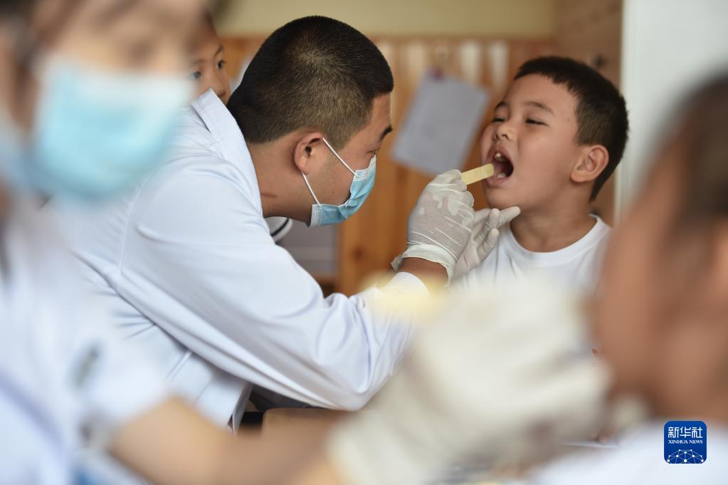 9月19日,河北省石家庄市井陉县医院口腔科医生为小朋友进行牙齿检查。
