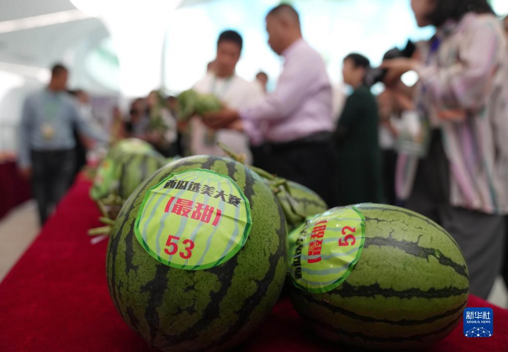 当日,河北省新乐市第四届“西甜瓜选美大赛”开幕,吸引众多瓜农和市民前来参加。近年来,新乐市依托当地沙地资源优势,引导农民采取“合作社 基地 农户”的模式,规模化发展西瓜、甜瓜等瓜果种植,促农增收。据介绍,目前该市西瓜、香瓜和甜瓜种植面积达6万多亩。新华社记者 杨世尧 摄