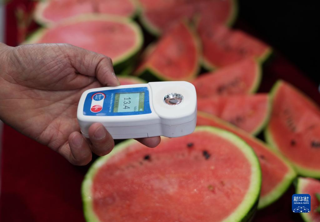 当日,河北省新乐市第四届“西甜瓜选美大赛”开幕,吸引众多瓜农和市民前来参加。近年来,新乐市依托当地沙地资源优势,引导农民采取“合作社 基地 农户”的模式,规模化发展西瓜、甜瓜等瓜果种植,促农增收。据介绍,目前该市西瓜、香瓜和甜瓜种植面积达6万多亩。新华社记者 杨世尧 摄