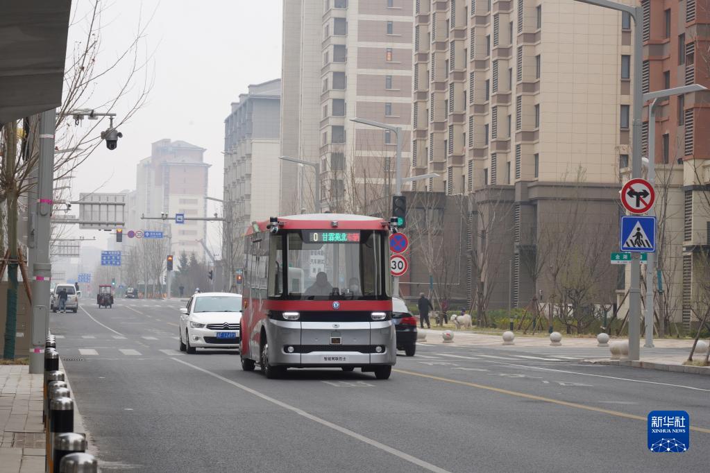 3月20日,智能网联巴士901线测试车在河北雄安新区容东片区道路上行驶。