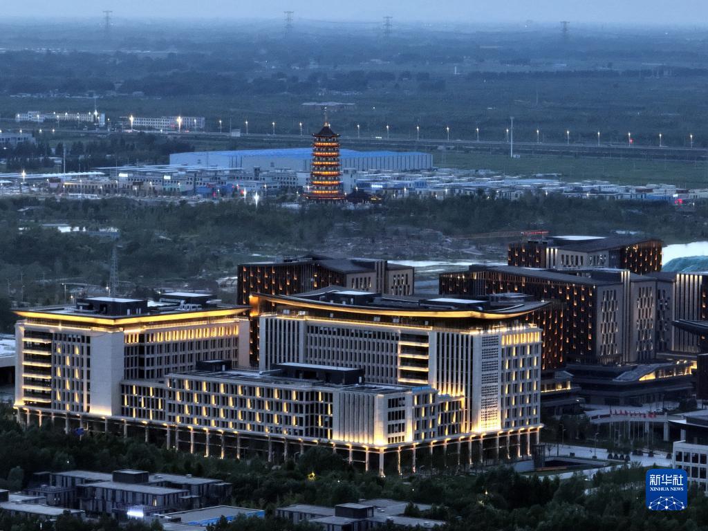 这是7月20日拍摄的雄安新区商务服务中心夜景(无人机照片)。