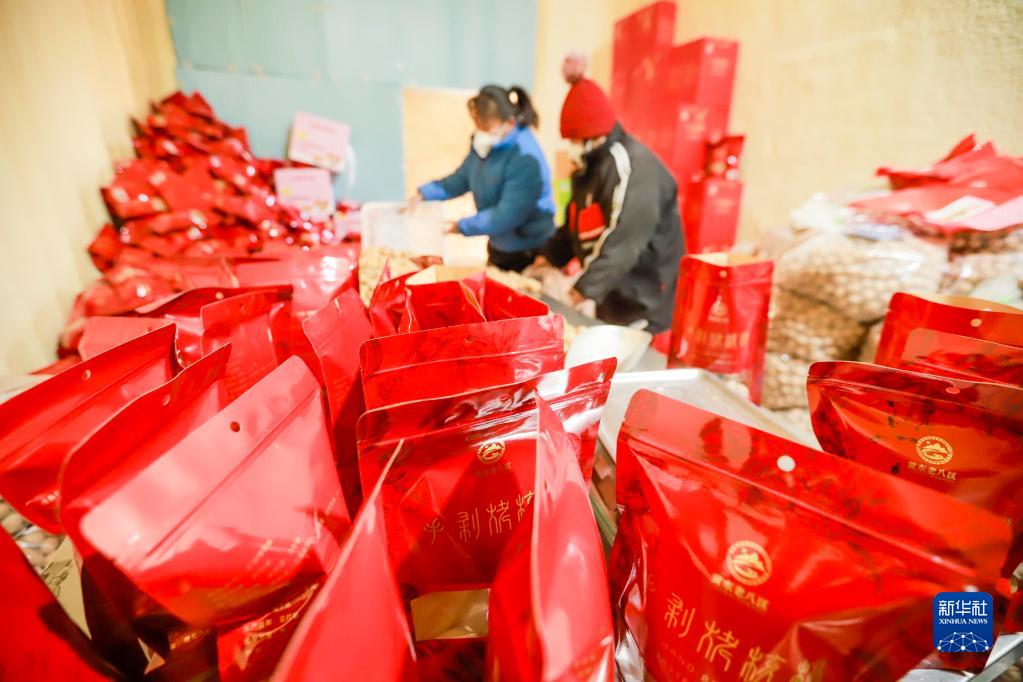 12月23日,农民在遵化市东旧寨镇石桥头村一家核桃专业合作社的车间整理熟核桃,准备装袋。