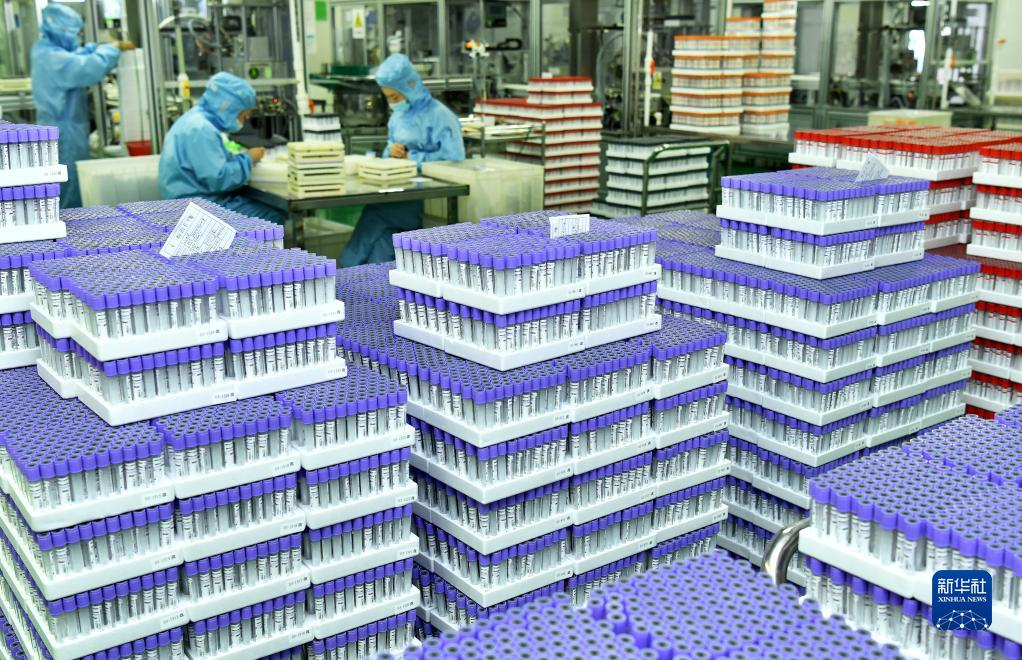 近年来,河北省沧州市大力发展药包材产业,目前已形成消杀用品、体外诊断试剂、一次性病毒采样管等药包材产品完整供应链。仅在药包材产业集中的沧州市沧县,相关企业就达1000多家,产品销往全国各地并出口俄罗斯、德国、法国等多个国家和地区。新华社发(苑立伟 摄)