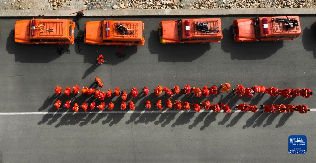 3月24日,森林消防队员进行扑火演练(无人机照片)。