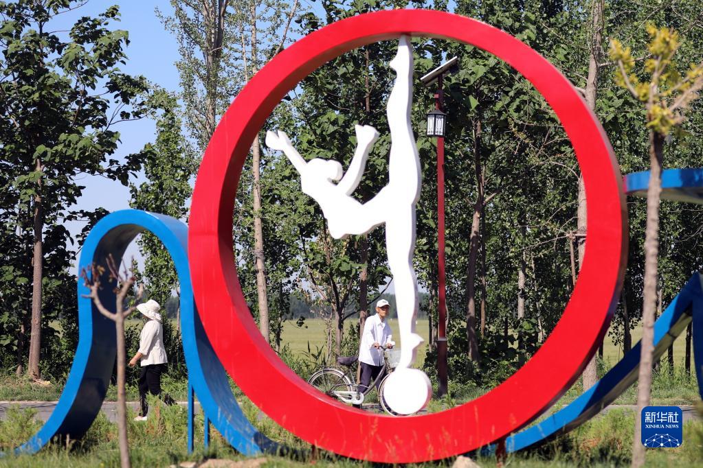 河北省沧州市吴桥县是著名的“杂技之乡”,大运河吴桥段总长34.8公里。近年来,当地依托大运河文化带建设,综合运河沿线历史资源、人文典故等元素,深入挖掘独特的杂技资源优势,发展“杂技 文旅”“杂技 农旅”“杂技 研学”等,打造运河公园、冀鲁风情园、运河“五季”公园等特色文旅项目和金银花、玫瑰花等特色农业项目,推进大运河畔生态带、产业带、旅游带建设。新华社记者 骆学峰 摄