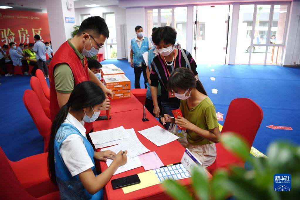 8月26日,回迁居民在雄安新区雄东片区a单元安置房交付点领取钥匙。