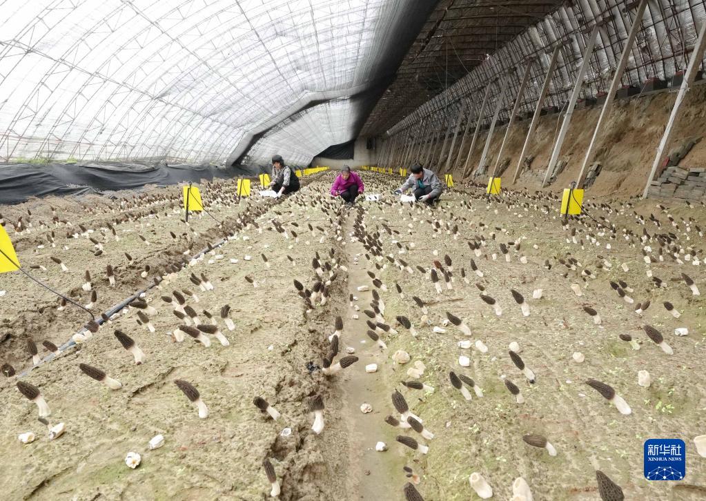 3月25日,河北省昌黎县泥井镇一家食用菌培育合作社的社员在采收羊肚菌。