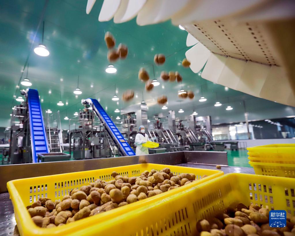 1月28日,工人在位于河北省迁西县的唐山尚禾谷板栗发展有限公司栗仁加工车间工作。