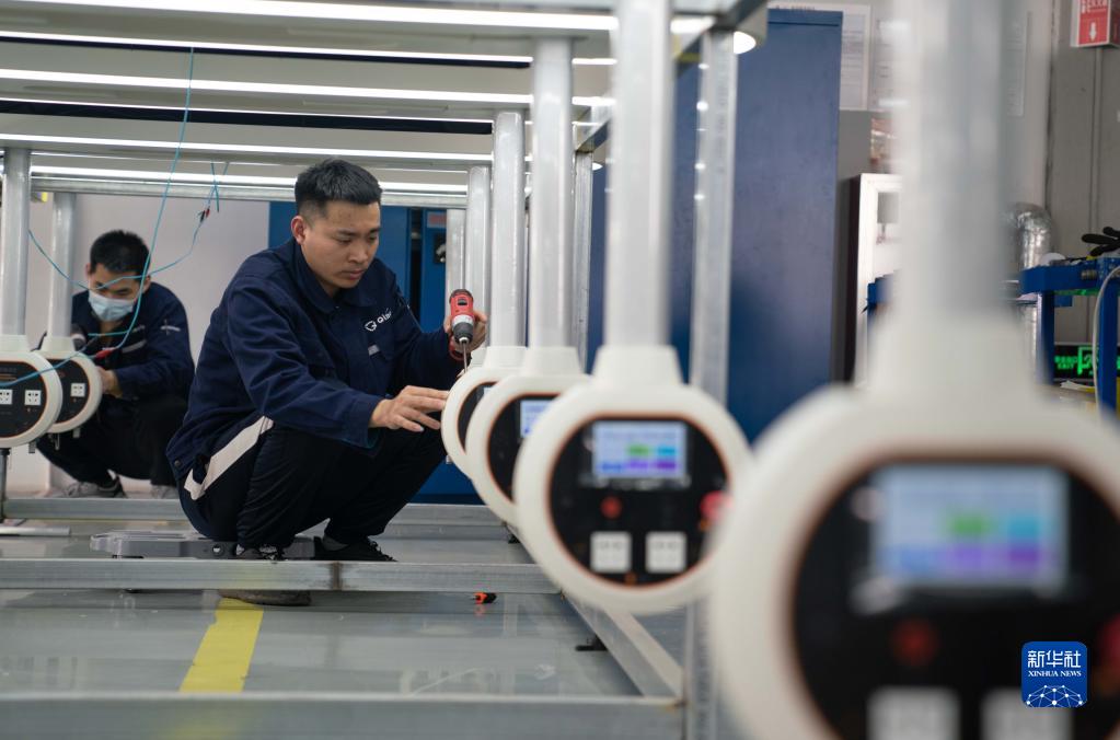 3月29日,在河北沧州渤海新区黄骅市京津装备制造转移园一家企业的教学实验仪器生产车间,工人在组装教学设备。