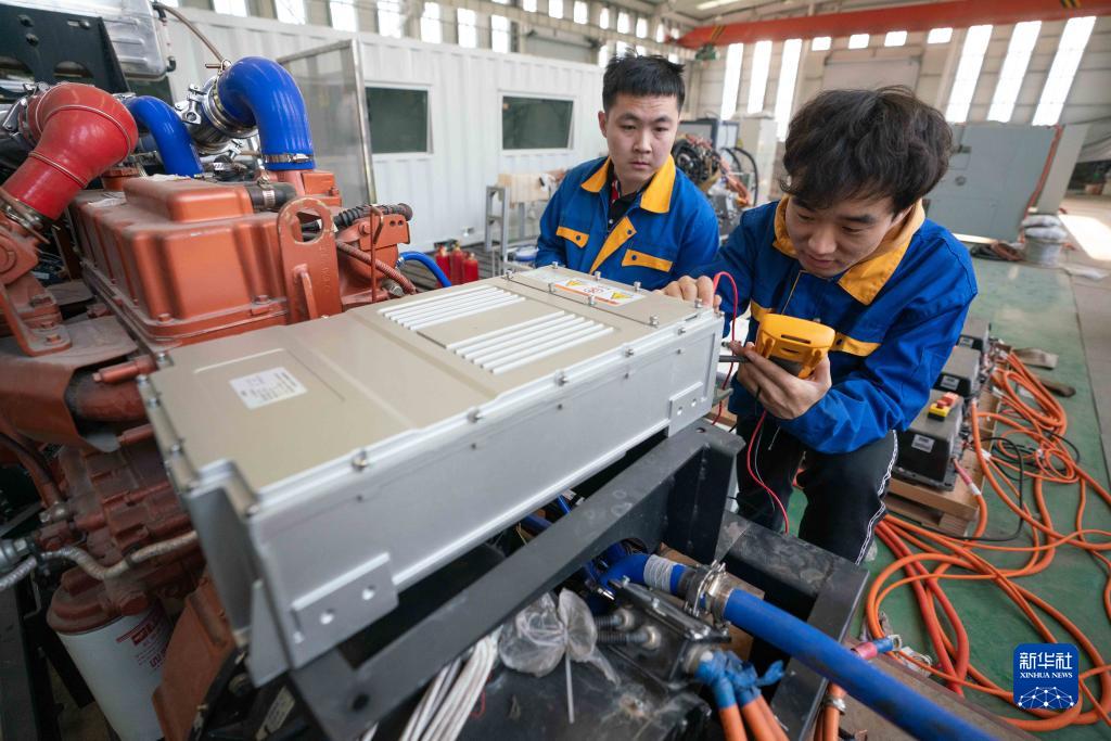 3月29日,在河北沧州渤海新区黄骅市北京交通大学黄骅轨道交通综合研发实验基地,来自北京交通大学的博士生团队进行混合动力系统试验。