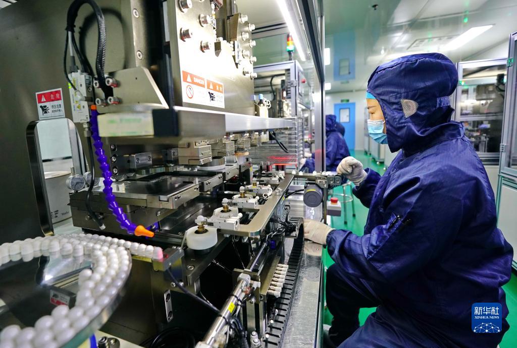 12月29日,一家隐形眼镜企业的工人在生产线上工作。