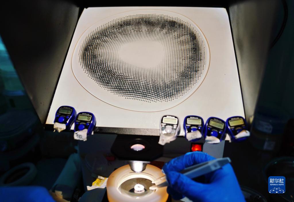 12月29日,一家隐形眼镜企业的工人在车间检测隐形眼镜质量。