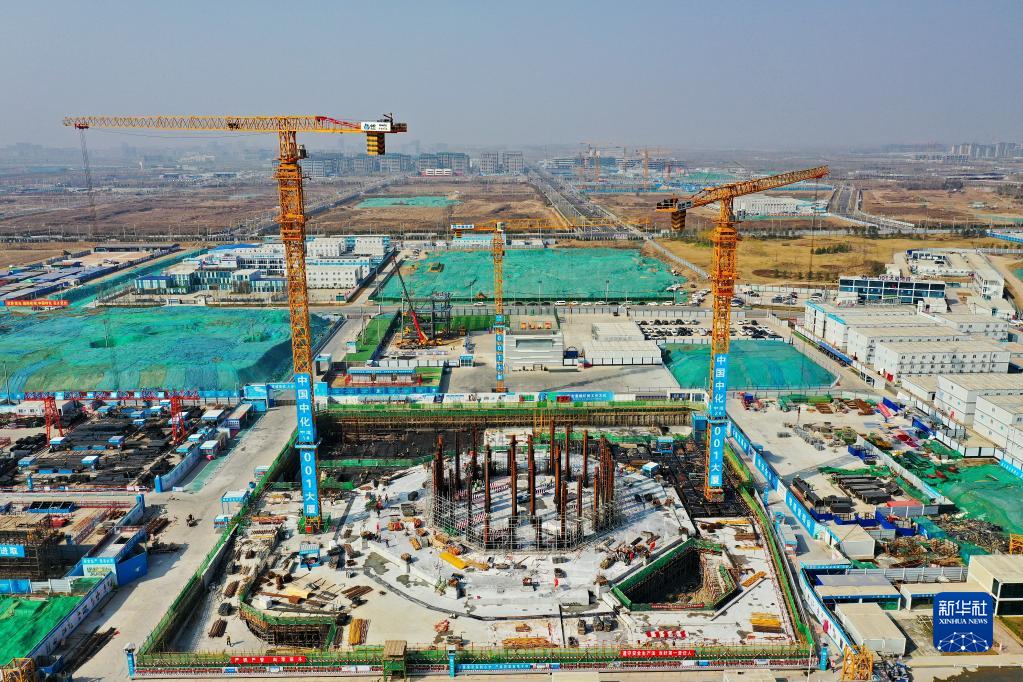 这是位于雄安新区启动区的中国中化雄安总部001大厦项目建设现场(3月30日摄,无人机照片)。