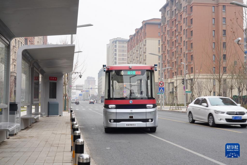 智能网联巴士901线测试车在雄安新区容东片区道路上行驶(3月20日摄)。