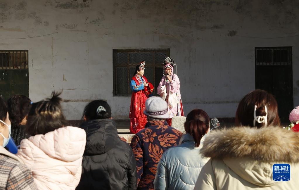 1月30日,在邢台市襄都区北大街街道办事处新兴东社区,演员在表演四股弦传统剧目。