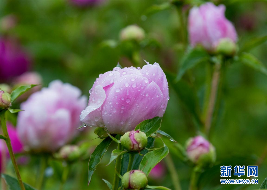 春雨滋润的芍药花含苞待放,娇嫩柔美。新华网发 李合印摄