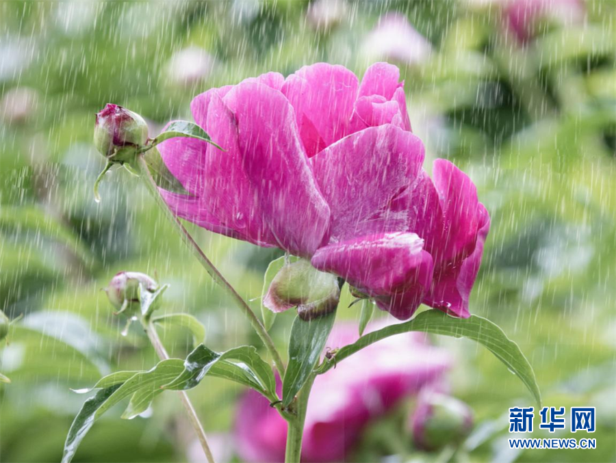 雨中盛开的芍药花充满生命活力。新华网发 李合印摄