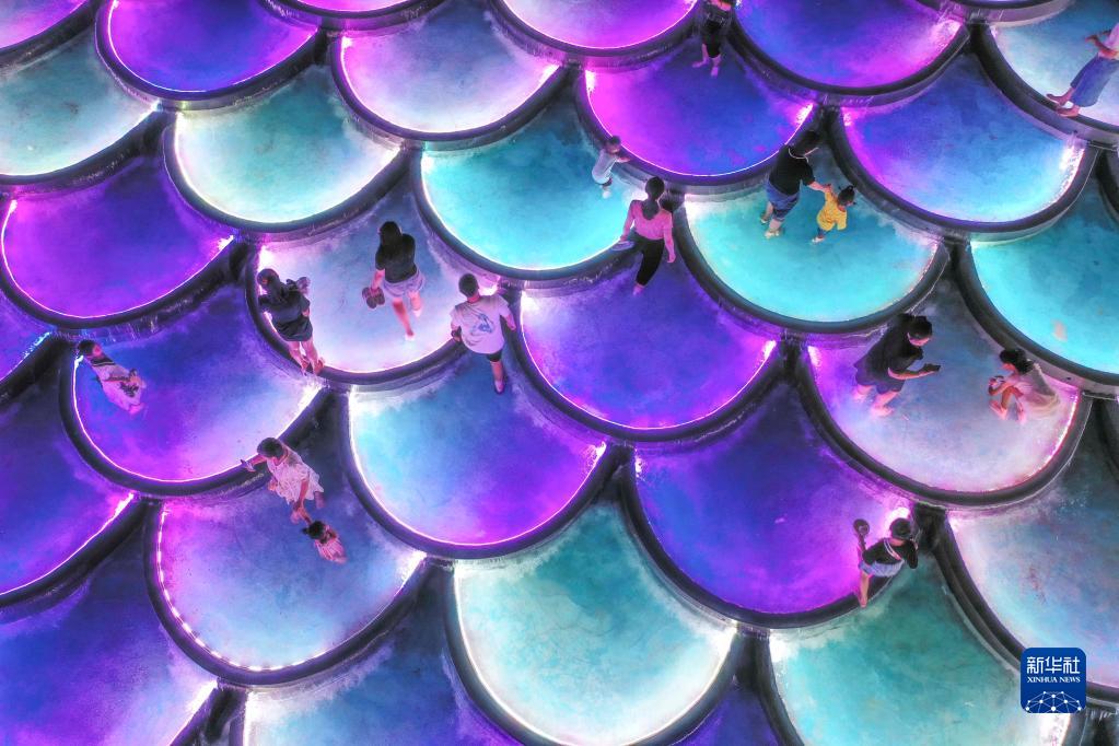 夏日夜晚,不少游客来到河北省遵化市团瓢庄乡山里各庄村夕阳谷景区鱼鳞坝景点赏景拍照、戏水消暑,乐享美好时光。