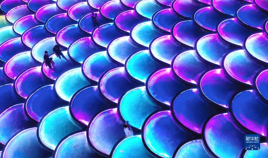 夏日夜晚,不少游客来到河北省遵化市团瓢庄乡山里各庄村夕阳谷景区鱼鳞坝景点赏景拍照、戏水消暑,乐享美好时光。