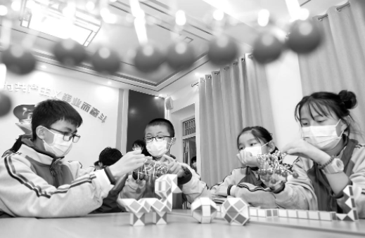 在活动室,石家庄市市庄路小学的学生们正在进行益智游戏比拼。记者 梁子栋 摄