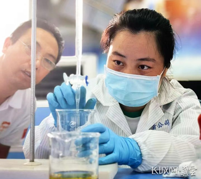 秦皇岛星箭特种玻璃有限公司工作人员正在对玻璃成分进行化学分析。