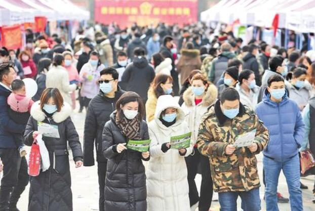 2022年2月12日,求职者在元氏县“春风行动”招聘会上了解岗位信息。(资料片)河北日报记者 赵永辉摄