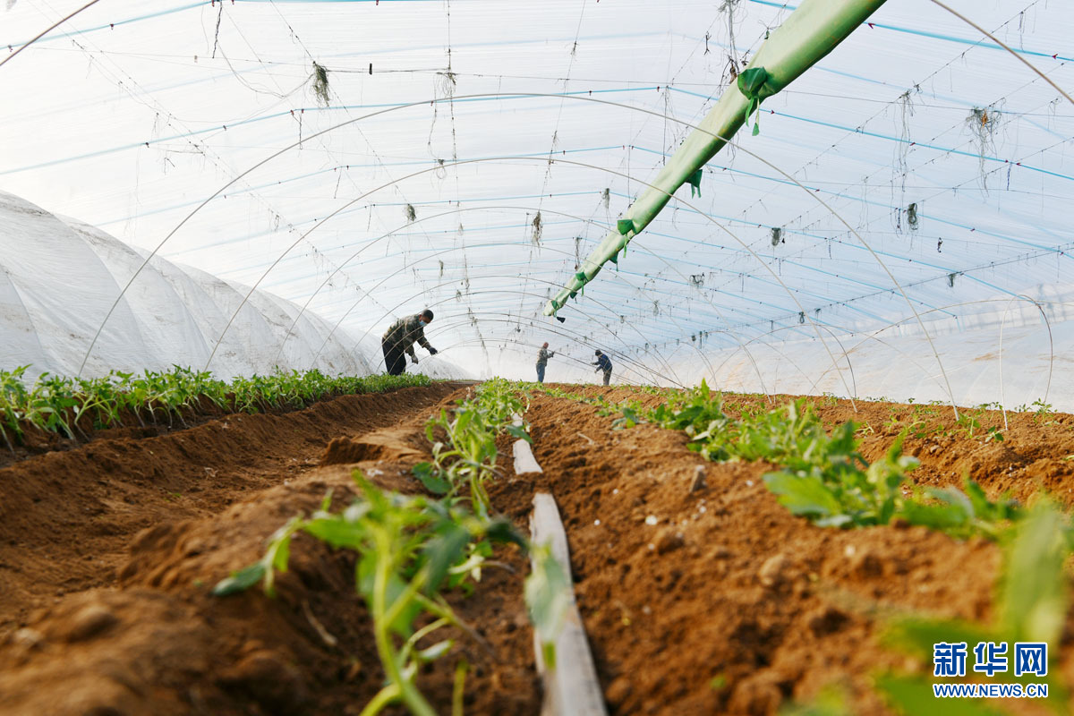 石家庄市栾城区柴赵村一家种植专业合作社的种植户正在管理蔬菜大棚。新华网发 李明发摄