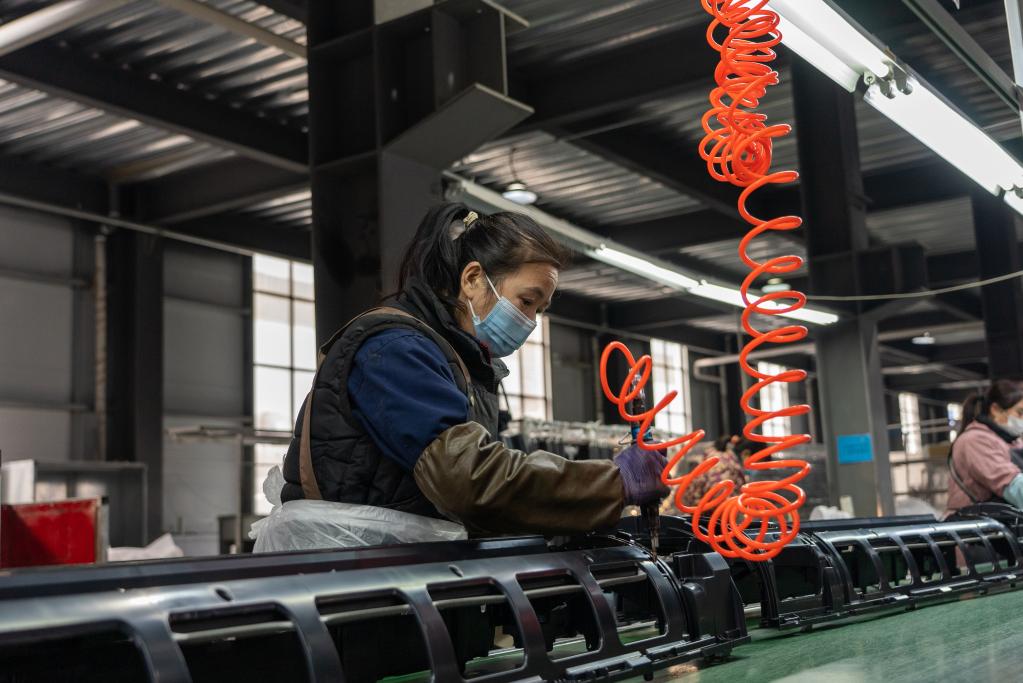 翼鑫塑料制品有限公司组装生产线上,工人正在组装空调外壳。(受访者供图)