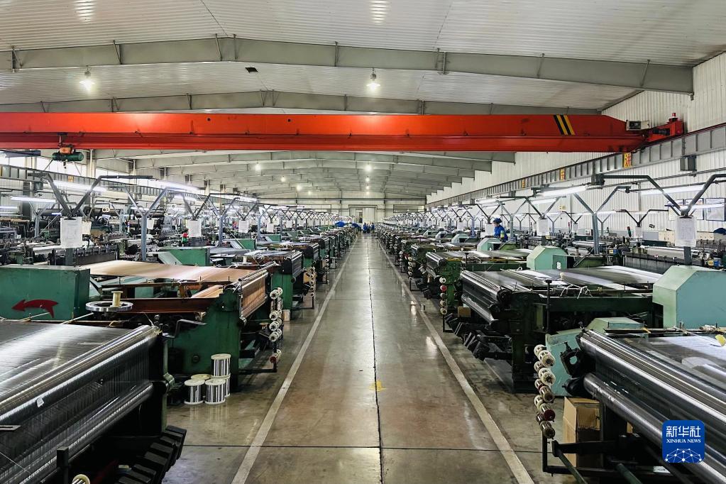 捷通网业生产车间里织机有序排列。新华社记者刘桃熊 摄