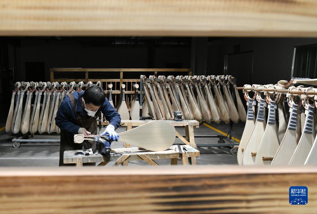 乐海公司生产车间内工人在制作琵琶。新华社记者牟宇 摄