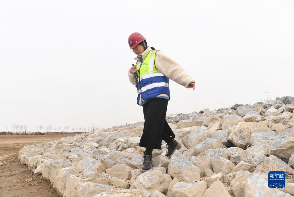 杨鑫博在雄安唐河河谷郊野公园项目现场(2月15日摄)。