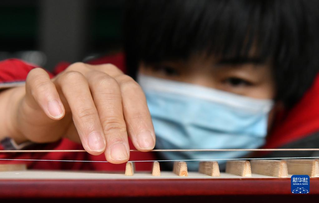 2月18日,河北省肃宁县一家民族乐器生产企业的工人在生产车间内调音。