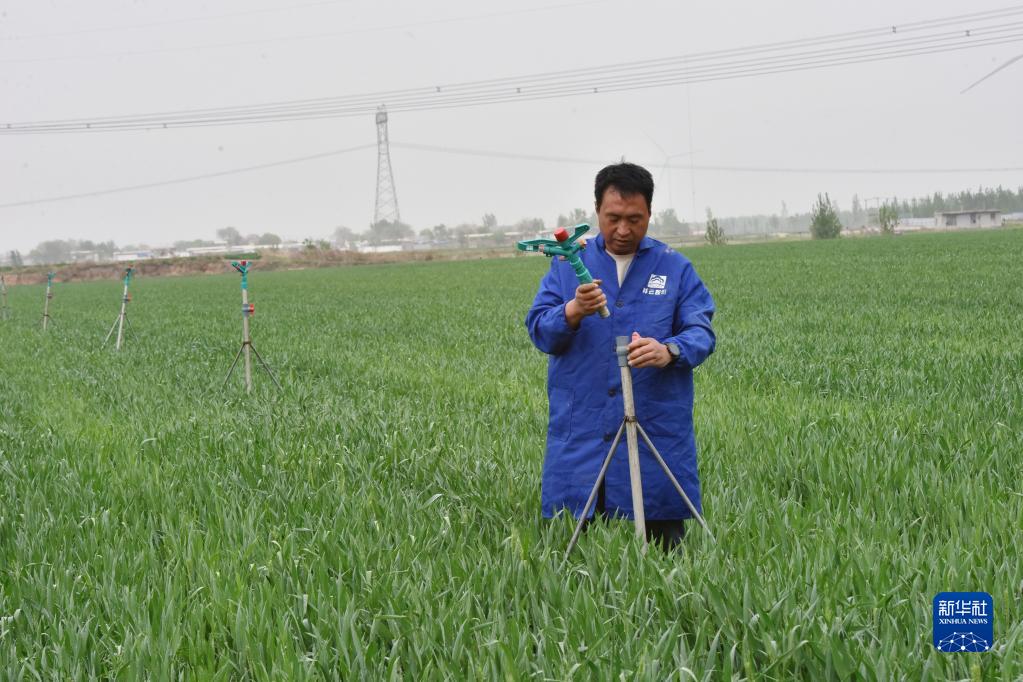 4月20日,张战强在检修自动喷灌设备。