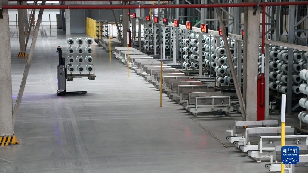 在河北冀中新材料有限公司玻璃纤维生产车间,agv智能搬运车正在搬运玻璃纤维。新华社记者邹尚伯 摄