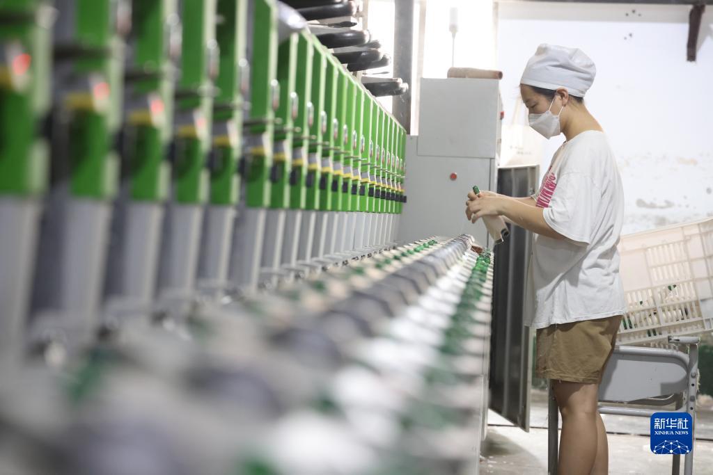 8月22日,在南和区东善友桥村一家纺织厂,女工在生产线上忙碌。