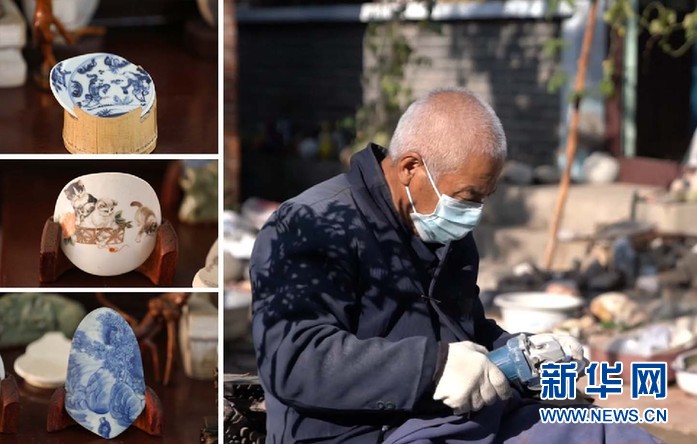 寒冬时节,河北涿州的一处小院不时传出打磨瓷器的“嗞嗞”声。院内,六十多岁的王立强系着围裙在专心打磨古瓷片。新华网发 刘利达摄