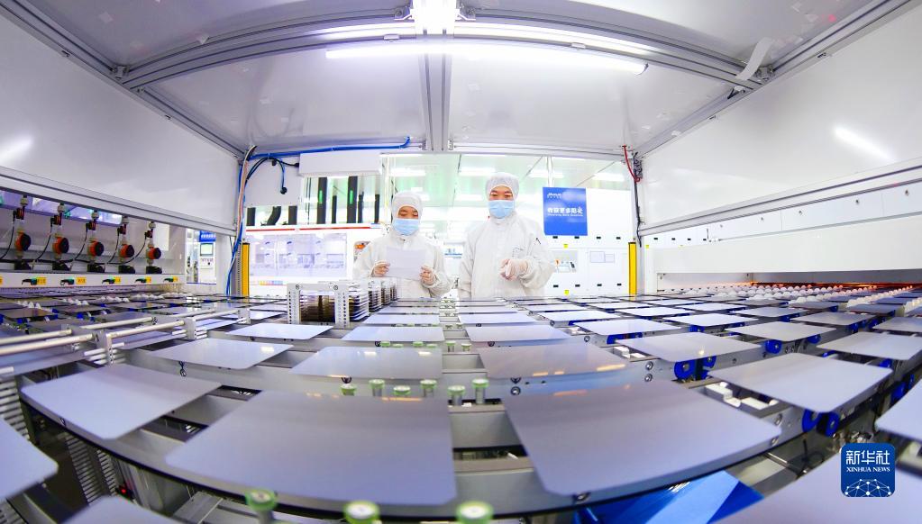 在晶澳太阳能科技股份有限公司,工作人员正在记录智能化生产线运行情况。新华社记者岳文婷 摄