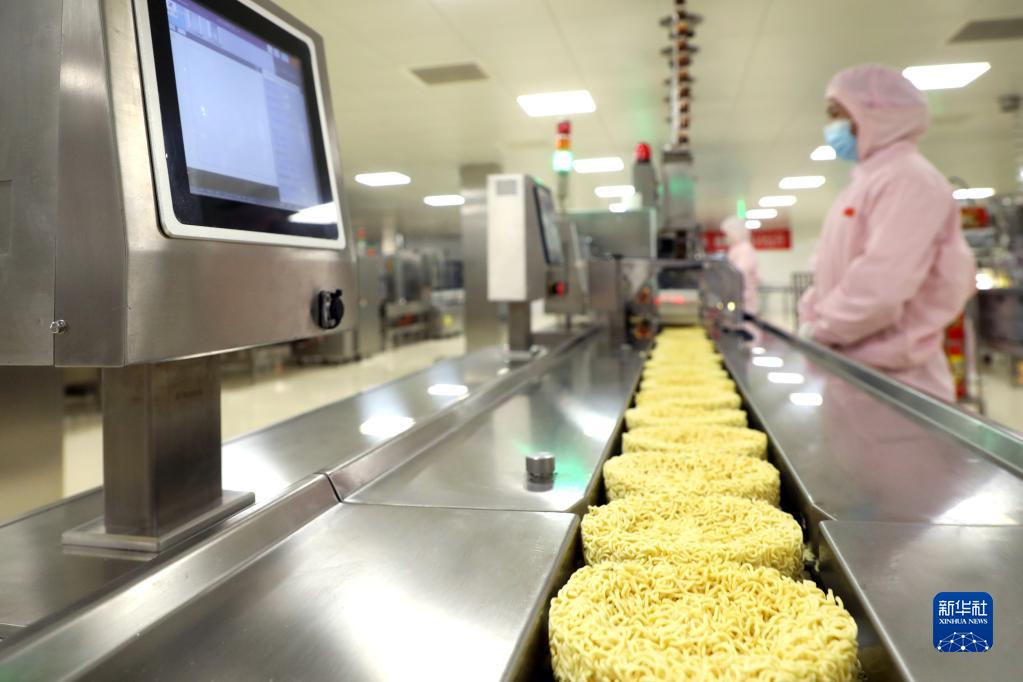 在今麦郎食品股份有限公司,员工在监测自动化制面设备运行情况。新华社记者岳文婷 摄