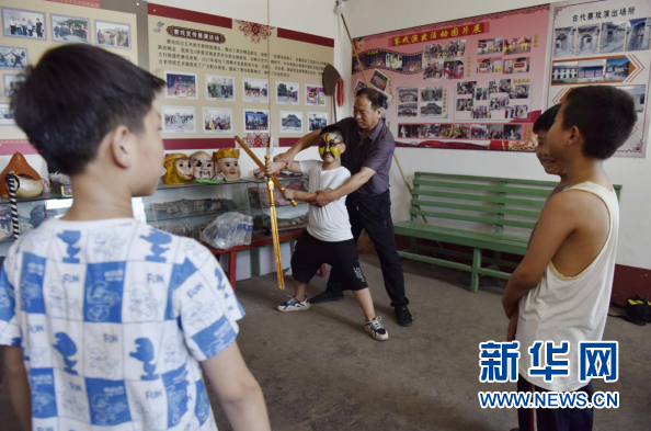 汤香平介绍,在过去,赛戏表演缺乏服装道具,就用地里种的葫芦做成头盔戴在头上,将细麻捋顺当成胡须,“现在不一样了,不仅有了制式服装,这里还成立了专业的培训基地。”