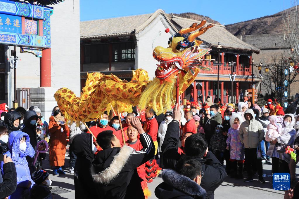 春节假期,河北省张家口市桥西区大境门庙会热闹举行,民间社火、舞龙、戏曲表演等节目吸引了众多游人。