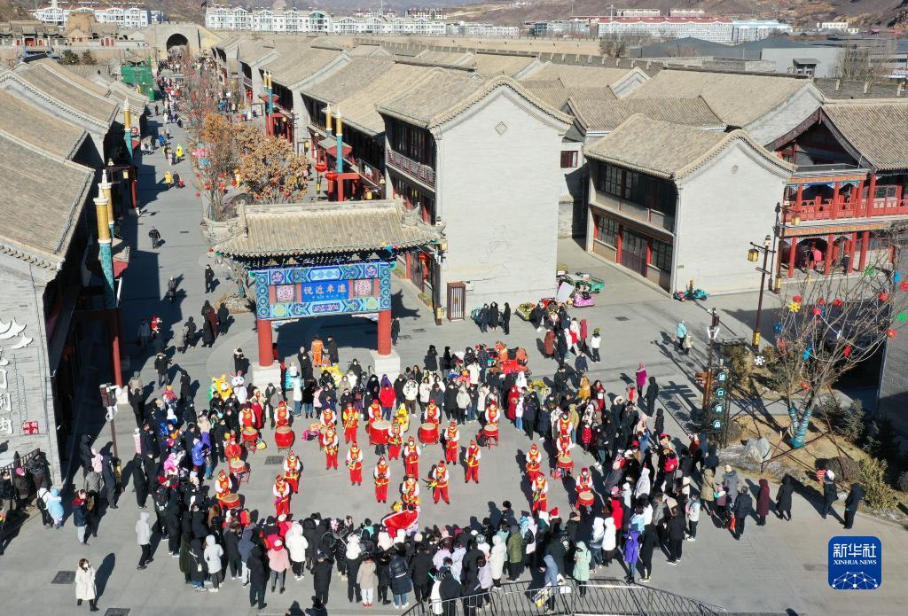 春节假期,河北省张家口市桥西区大境门庙会热闹举行,民间社火、舞龙、戏曲表演等节目吸引了众多游人。