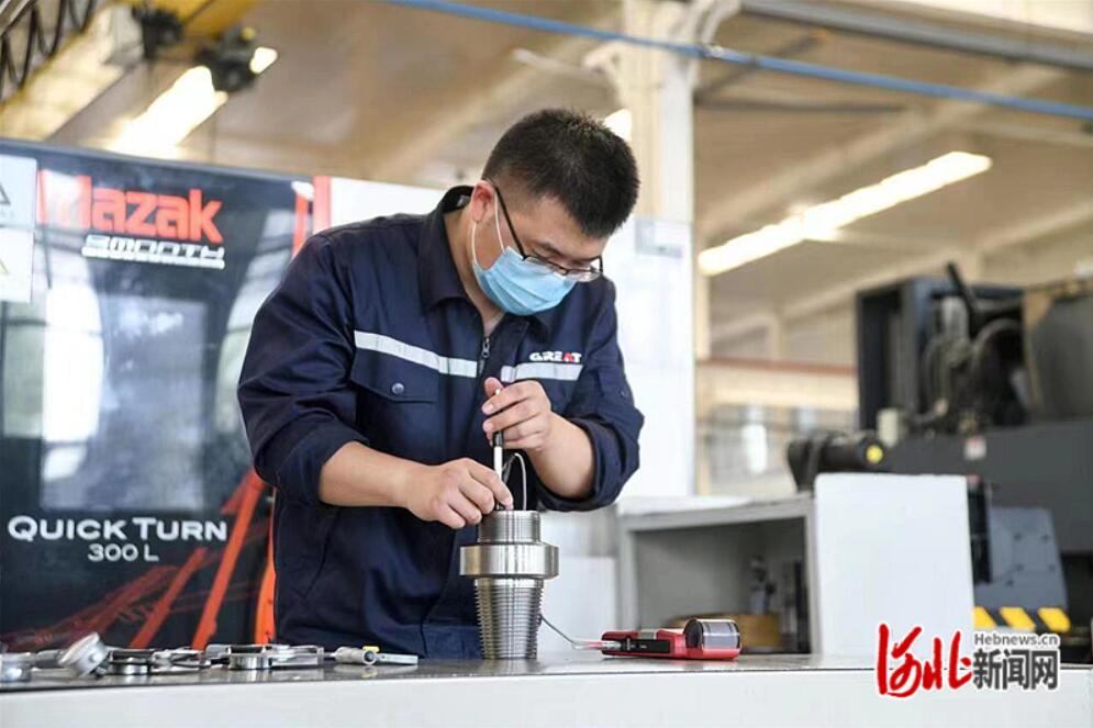 在沧州格锐特钻头有限公司生产车间,工人正在进行成品检测。 河北日报通讯员郭超摄