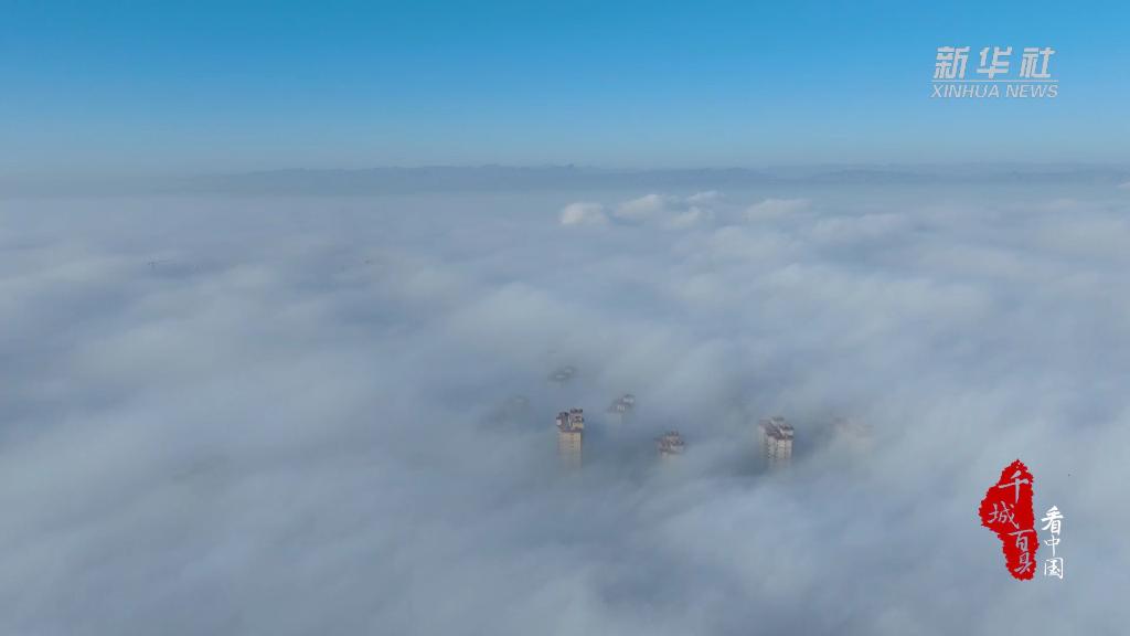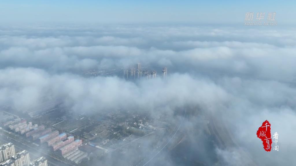 初冬时节,雨后的河北省邢台市上空出现平流雾景观。从高空俯瞰,整个城市笼罩在缥缈的云雾中若隐若现、如梦似幻。