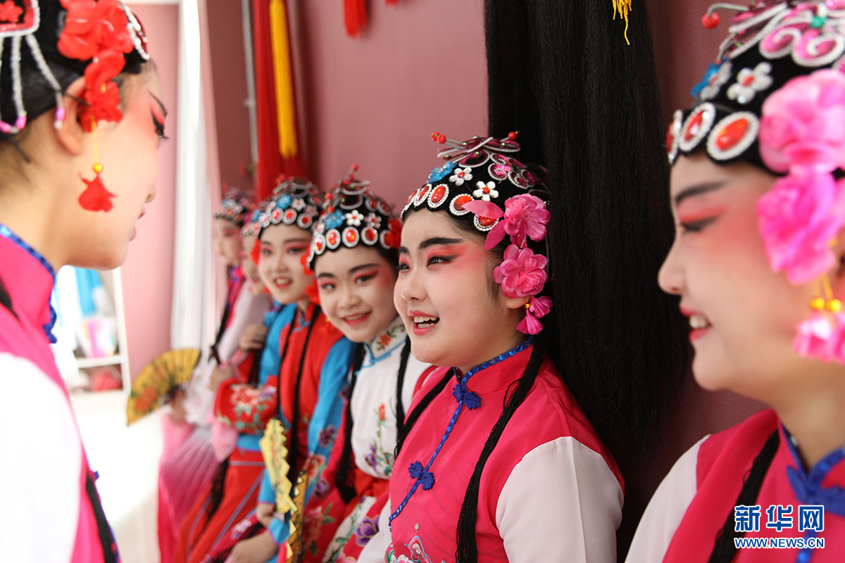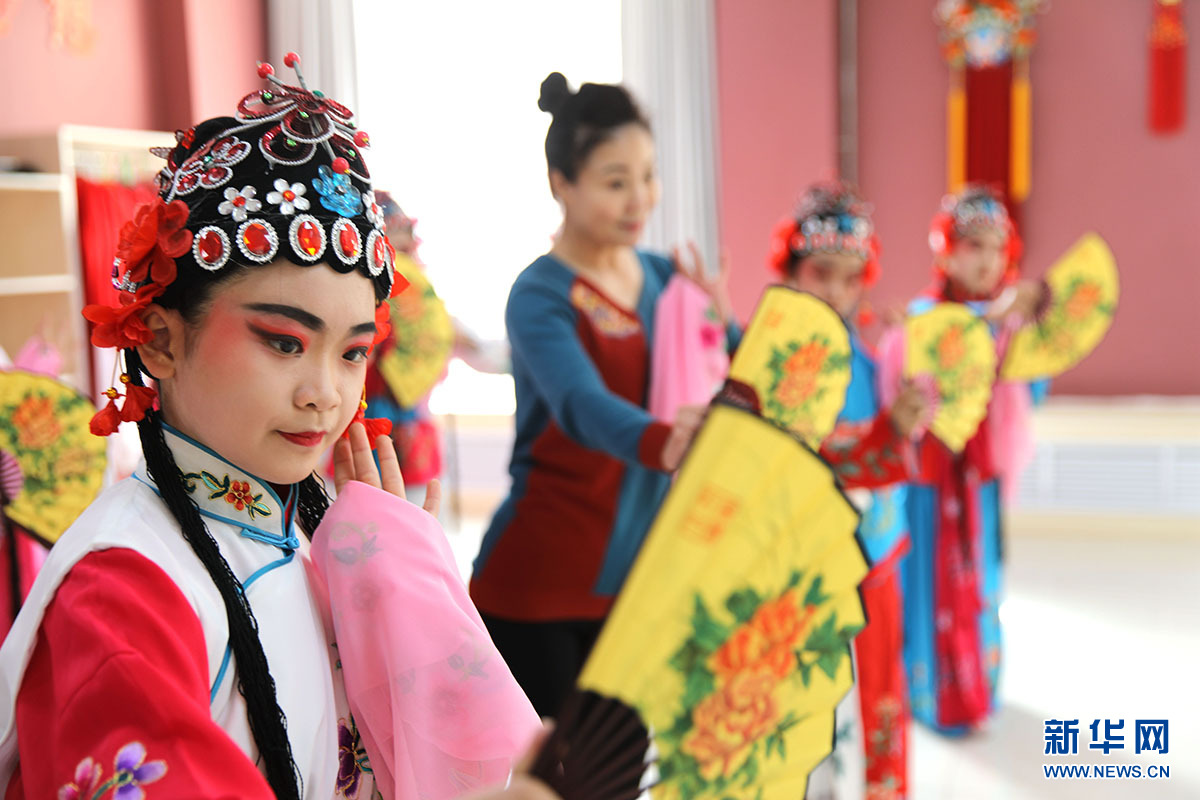3月28日,宽城满族自治县第三小学学生在学习戏曲。新华网发 刘环宇摄