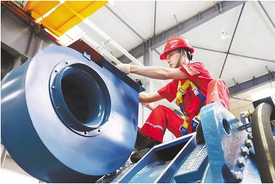 经开区新能源装备制造企业金风科技河北有限公司车间内,工人在检修设备。河北日报通讯员 毕瑞祥摄