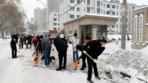 2月21日,河北省林业和草原局积极落实门前三包政策,广大干部职工带头清扫街道积雪,确保道路安全通畅。