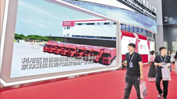 "京津冀共建重点产业链——2024廊坊经洽会观察③“共建全国现代商贸物流重要基地、共谱京津冀协同发展新篇章”,是本次廊坊经洽会的主题。"