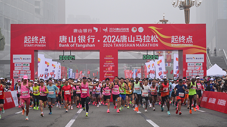 10月27日,2024唐山马拉松在河北省唐山市抗震纪念碑广场鸣枪开跑,来自国内外的2万余名跑者参赛。
